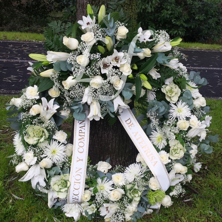 Las coronas funerarias son uno de los elementos más representativos del arte floral funerario. Su forma circular simboliza la eternidad, ya que los círculos no tienen fin. También simbolizan el ciclo de la vida. Los elementos más utilizados suelen ser flores como rosas blancas, lirios y margaritas, que representan pureza y paz.